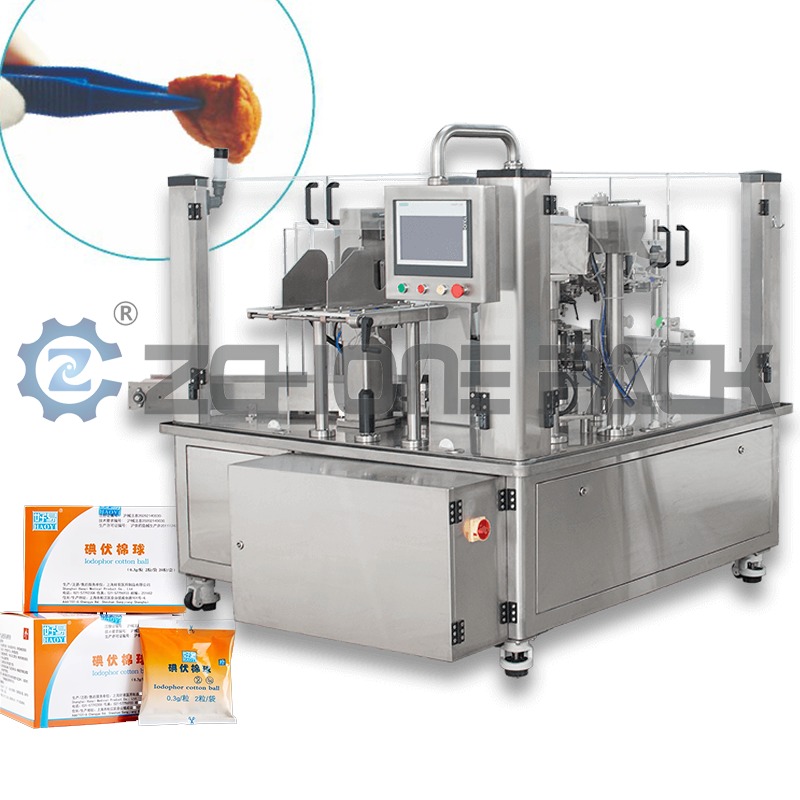 Povidone Yodine Cotton Ball Packing Machine Solid Plus Liquid Dual Material Multifungsi Mesin Pengemasan
